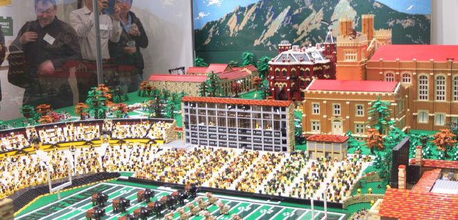 • The reception was held in the Heritage Museum of the University Of Colorado. Attendees could admire a rock from the Moon, old astronaut suits, and a lego model of campus.